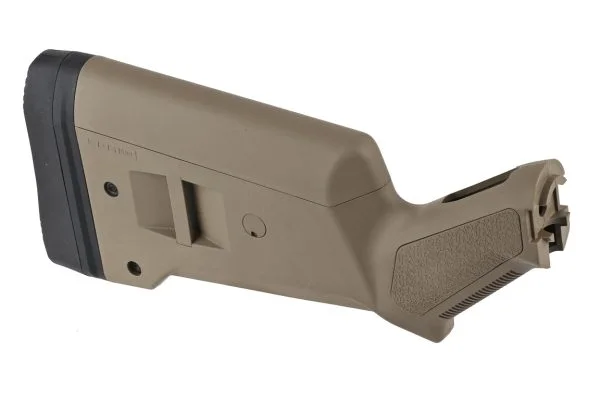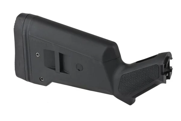 The Magpul SGA Stock is an ambidextrous, user-configurable buttstock designed to add much-needed adjustability to the tried and true Mossberg® 500/590/590A1 12ga series of shotguns. Featuring a spacer system for length of pull adjustment, improved grip ergonomics, recoil-reducing butt-pad, optional cheek risers for use with optics/raised sights, and other accessories.